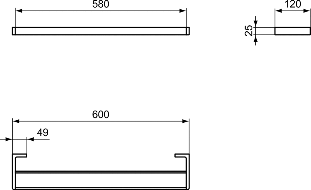 Podwójna poręcz na ręcznik 60 cm, Squared. Zestaw montażowy w komplecie. Dostępne wykończenia: - technologia galwanizacji (AA), - technologia PVD (GN, A2, A5).