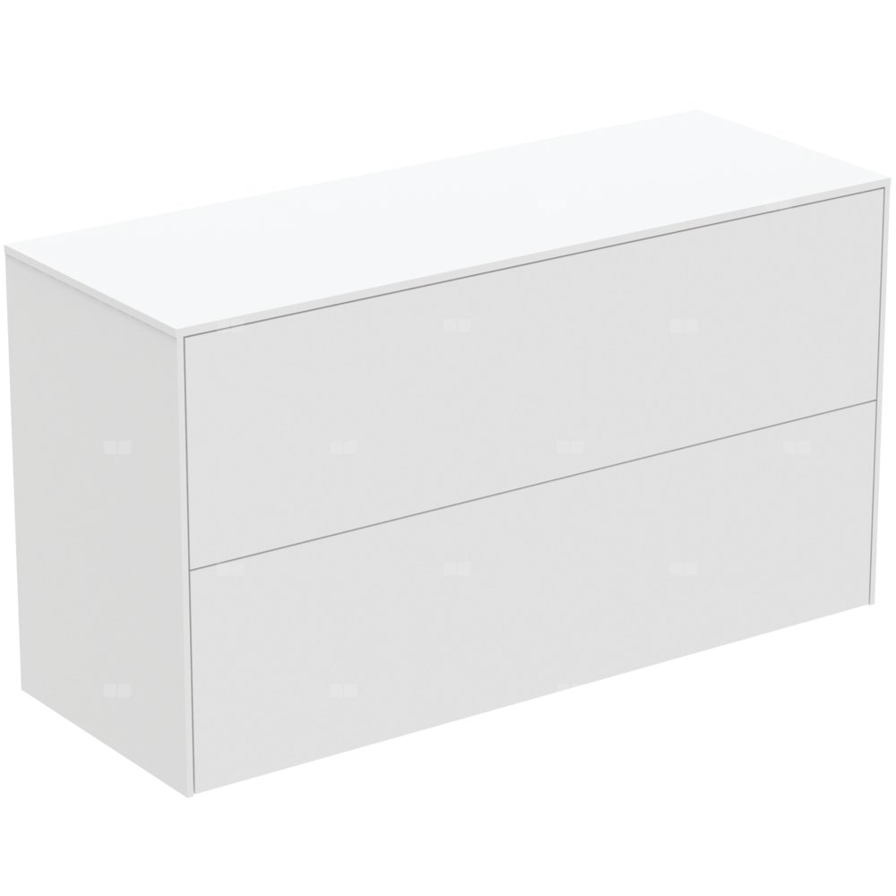 Szafka pod umywalkę bez wycięć na blacie. Do samodzielnego montażu lub do kompletowania z wiszącymi (szlifowanymi od spodu) lub nablatowymi umywalkami (z wykorzysteniem szablonów do wycięcia otworu). Z 2 zewnętrznymi szufladami z funkcjami Push to open i wolnym zamykaniem. Wykończenie wewnętrzne szafek w kolorze antracytowym.