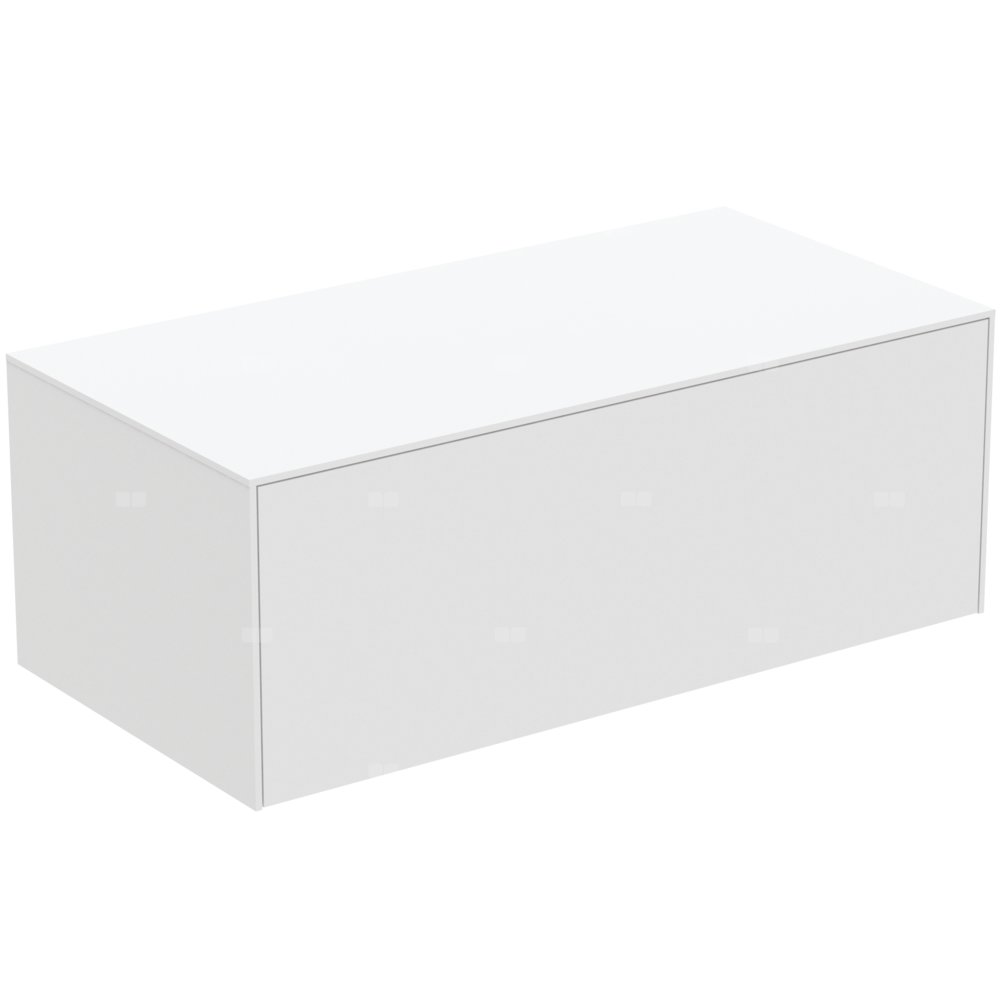 Szafka pod umywalkę bez wycięć na blacie. Z 1 szufladą z funkcjami Push to open i wolnym zamykaniem. Wykończenie wewnętrzne szafek w kolorze antracytowym. Do samodzielnego montażu lub do kompletowania z umywalkami (z wykorzysteniem szablonów do wycięcia otworu).