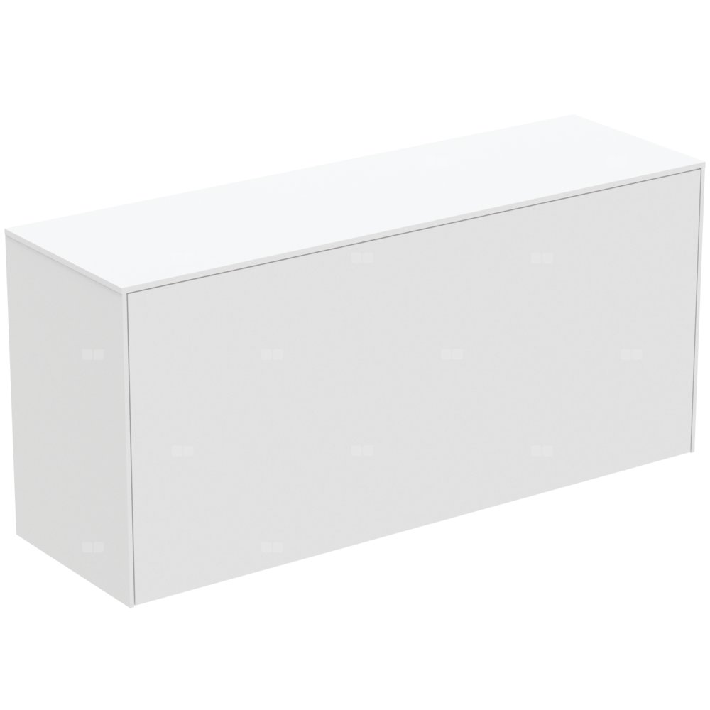 Szafka pod umywalkę bez wycięć na blacie, z 1 szufladą zewnętrzną i 1 szufladą wewnętrzną z funkcjami push to open i samodomykania "soft close". Wykończenie wewnętrzne szafek w kolorze antracytowym. Do samodzielnego montażu lub do kompletowania z wiszącymi (szlifowanymi od spodu) lub nablatowymi umywalkami (z wykorzysteniem szablonów do wycięcia otworu).
