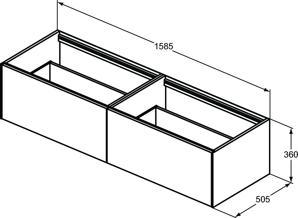Szafka pod umywalkę do kompletowania z blatem ceramicznym 160 cm T4202. Blat ceramiczny (bez otworu/z otworem na zamówienie) zamawiany oddzielnie pod wymiar wybranej umywalki. Z 2 szufladami z funkcjami push to open i samodomykania "soft close". Wykończenie wewnętrzne szafek w kolorze antracytowym, pasujące do koloru szuflad.