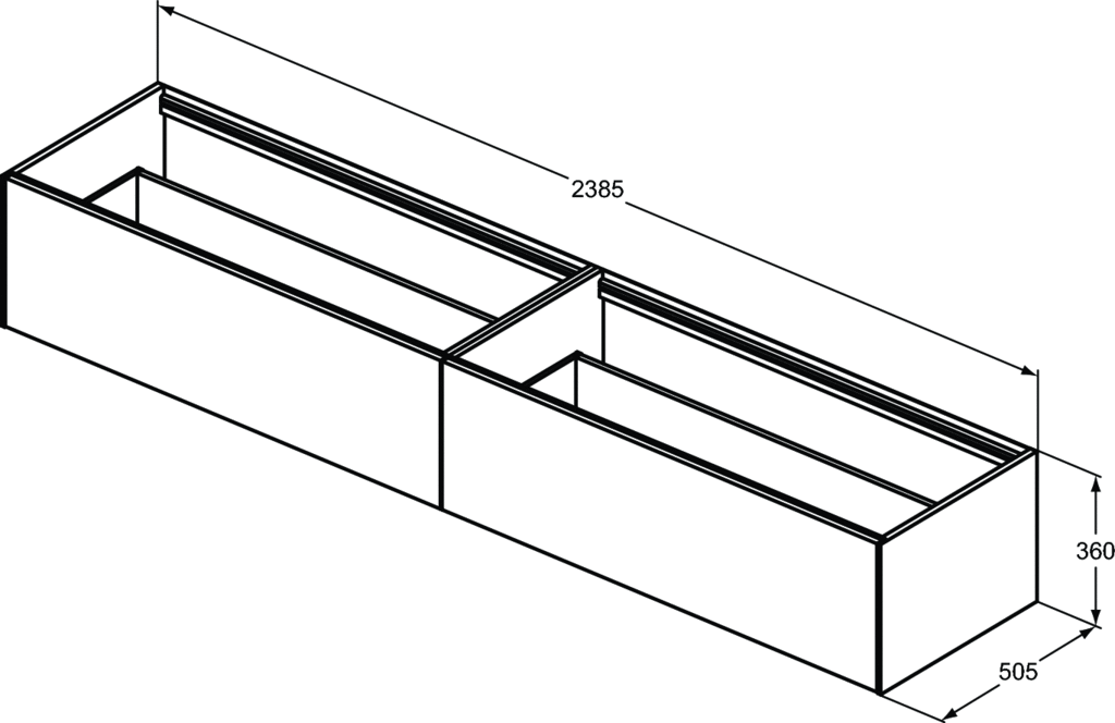 Z 2 szufladami z funkcjami push to open i samodomykania "soft close". Wykończenie wewnętrzne szafek w kolorze antracytowym, pasujące do koloru szuflad. Do kompletowania z blatem ceramicznym 240 cm T4343. Blat ceramiczny (bez otworu/z otworem na zamówienie) zamawiany oddzielnie pod wymiar wybranej umywalki. Rekomendowane wyposażenie: syfon oszczędzający przestrzeń EE23033967 - dostępny w osobnym zamówieniu.