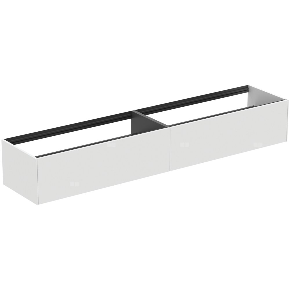 Szafka pod umywalkę do kompletowania z blatem ceramicznym 240 cm T4343. Blat ceramiczny (bez otworu/z otworem na zamówienie) zamawiany oddzielnie pod wymiar wybranej umywalki. Z 2 szufladami z funkcjami push to open i samodomykania "soft close". Wykończenie wewnętrzne szafek w kolorze antracytowym, pasujące do koloru szuflad.