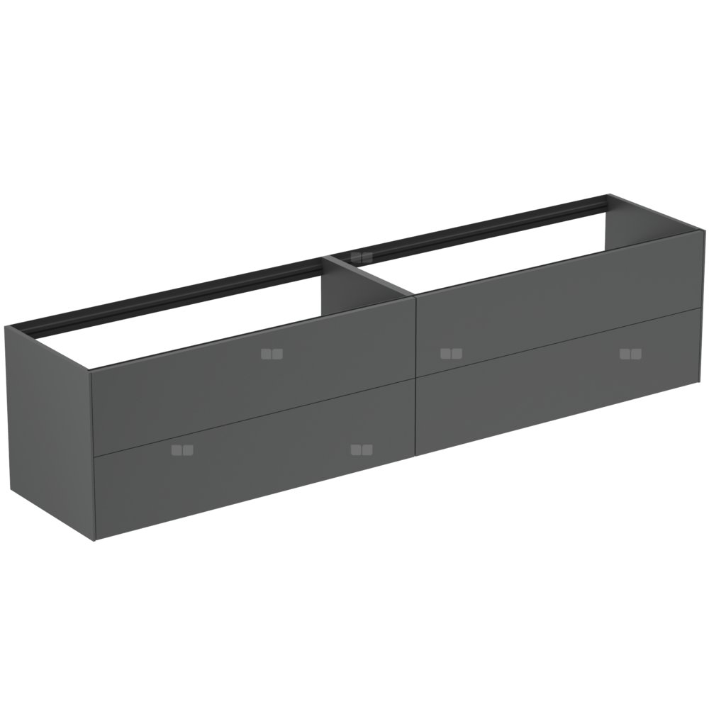 Z 2 zewnętrznymi i 2 wewnętrznymi szufladami z funkcjami push to open i samodomykania "soft close". Wykończenie wewnętrzne szafek w kolorze antracytowym, pasujące do koloru szuflad. Do kompletowania z blatem ceramicznym 240 cm T4343. Blat ceramiczny (bez otworu/z otworem na zamówienie) zamawiany oddzielnie pod wymiar wybranej umywalki. Rekomendowane wyposażenie: syfon oszczędzający przestrzeń EE23033967 - dostępny w osobnym zamówieniu.