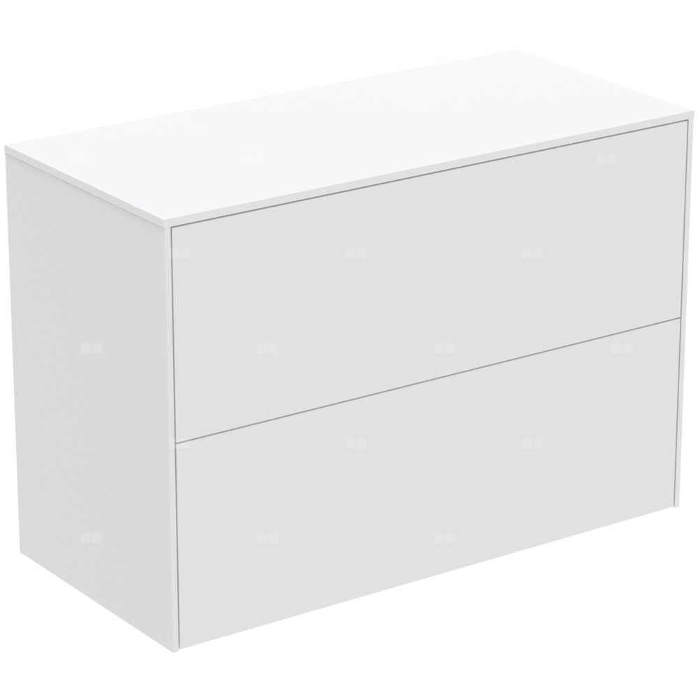 Szafka pod umywalkę bez wycięć na blacie. Do samodzielnego montażu lub do kompletowania z wiszącymi (szlifowanymi od spodu) lub nablatowymi umywalkami (z wykorzysteniem szablonów do wycięcia otworu). Z 2 zewnętrznymi szufladami z funkcjami Push to open i wolnym zamykaniem. Wykończenie wewnętrzne szafek w kolorze antracytowym.