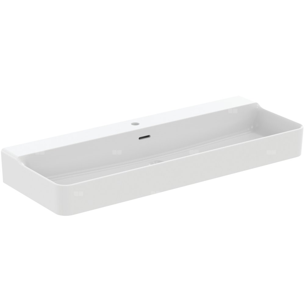 Umywalka mocowana do ściany z przelewem (kształt szczelinowy). Opcjonalnie: rekomendowany zestaw montażowy WW965340, dekoracyjny syfon G1 1/4 E0079AA (do montażu z/bez pólpostumentu lub podstawowej szafki), zawór kątowy odcinający A3491AA; Rozeta do syfonu G1 1/4 (do montażu z baterią bez korka automatycznego) - B4801AA.