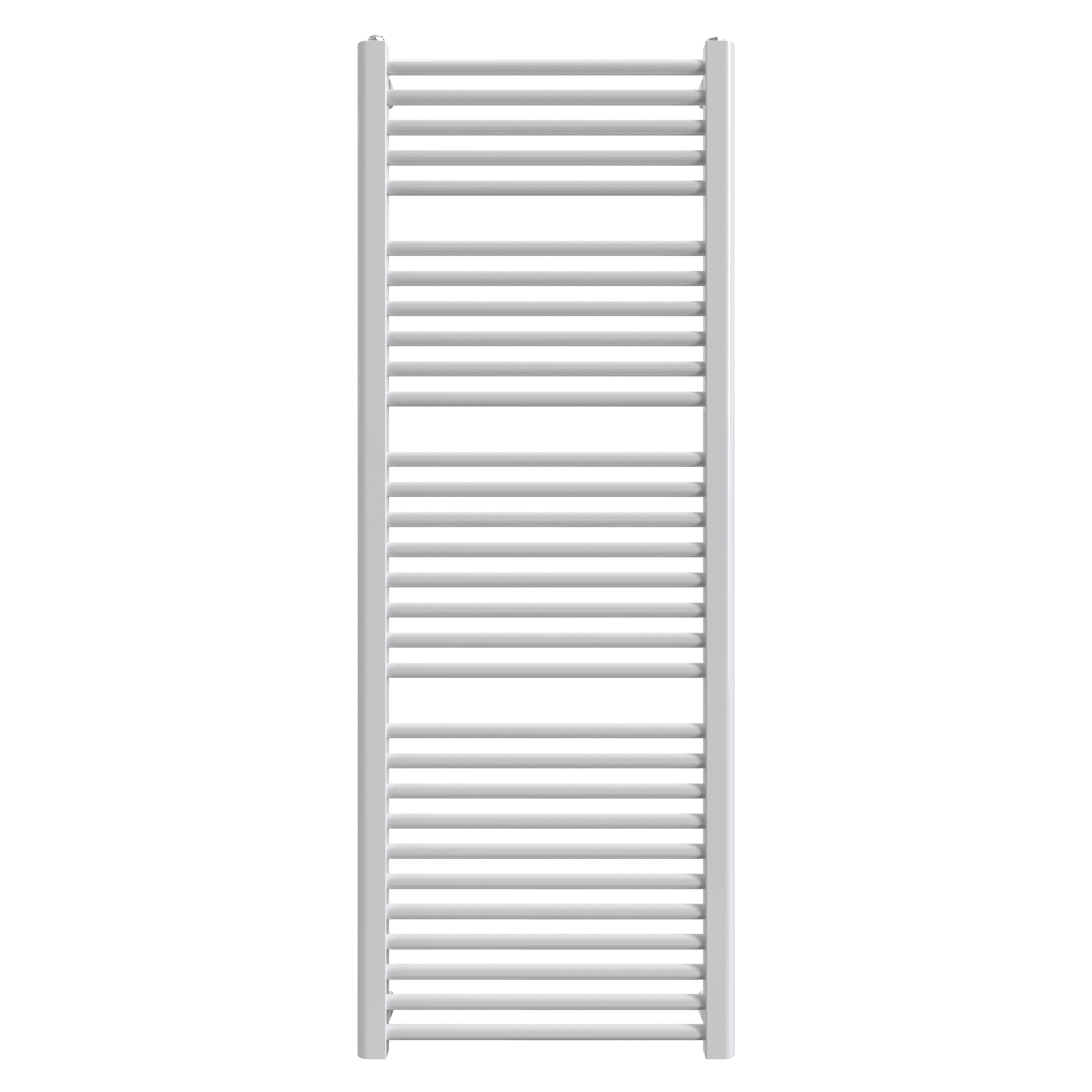 Grzejnik łazienkowy w kolorze białym. Typ: GRN - grzejnik pionowy łazienkowy. Materiał: stal niskowęglowa niestopowa. Konstrukcja: kolektor profil "D" 40 x 30, rury DN 20. Wysokość: 620, 740, 940, 1180, 1340, 1500, 1700, 1820 mm, szerokość: 400, 500, 600 mm. Ciśnienie robocze do 1,0 MPa. Temp. pracy do 95°C. Wyposażenie standardowe: korek 1/2", odpowietrznik 1/2", zawieszenie grzejnikowe typ Z 13. Wykończenie powierzchni: kolor biały. Przyłącza 1/2" GW.