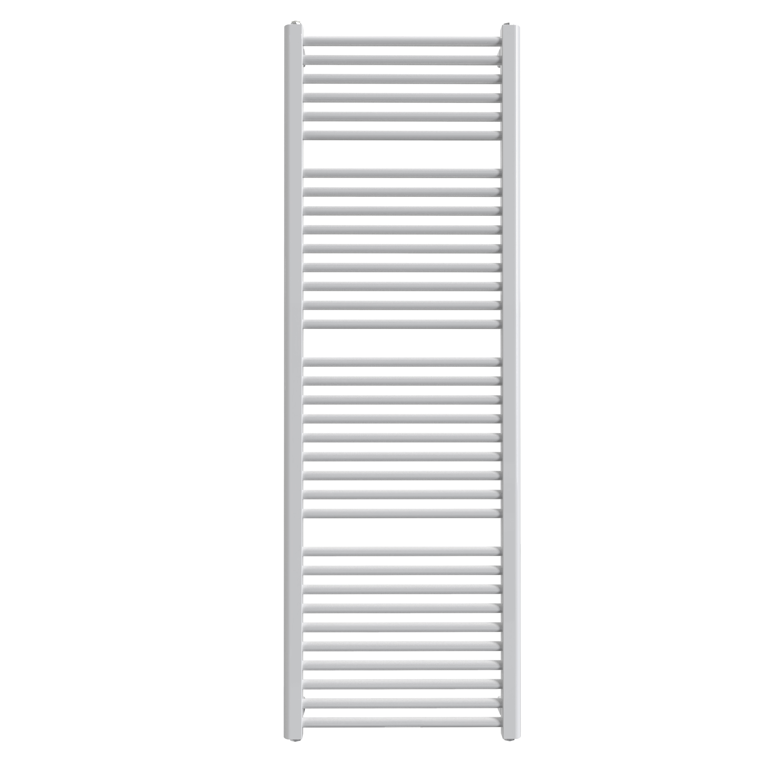 Grzejnik łazienkowy w kolorze białym. Typ: GRN - grzejnik pionowy łazienkowy. Materiał: stal niskowęglowa niestopowa. Konstrukcja: kolektor profil "D" 40 x 30, rury DN 20. Wysokość: 620, 740, 940, 1180, 1340, 1500, 1700, 1820 mm, szerokość: 400, 500, 600 mm. Ciśnienie robocze do 1,0 MPa. Temp. pracy do 95°C. Wyposażenie standardowe: korek 1/2", odpowietrznik 1/2", zawieszenie grzejnikowe typ Z 13. Wykończenie powierzchni: kolor biały. Przyłącza 1/2" GW.