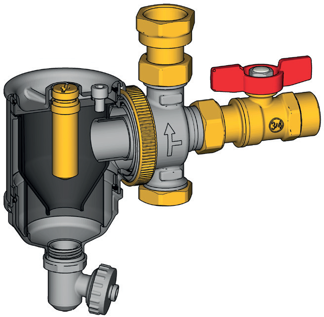 ZAWARTOŚĆ:Magnetyczny, kompaktowy separator zanieczyszczeń wyposażony w komorę cyklonową z osadnikiem oraz filtrem 300 µm do instalacji c.o. GZ ¾ zbudowany jest z: