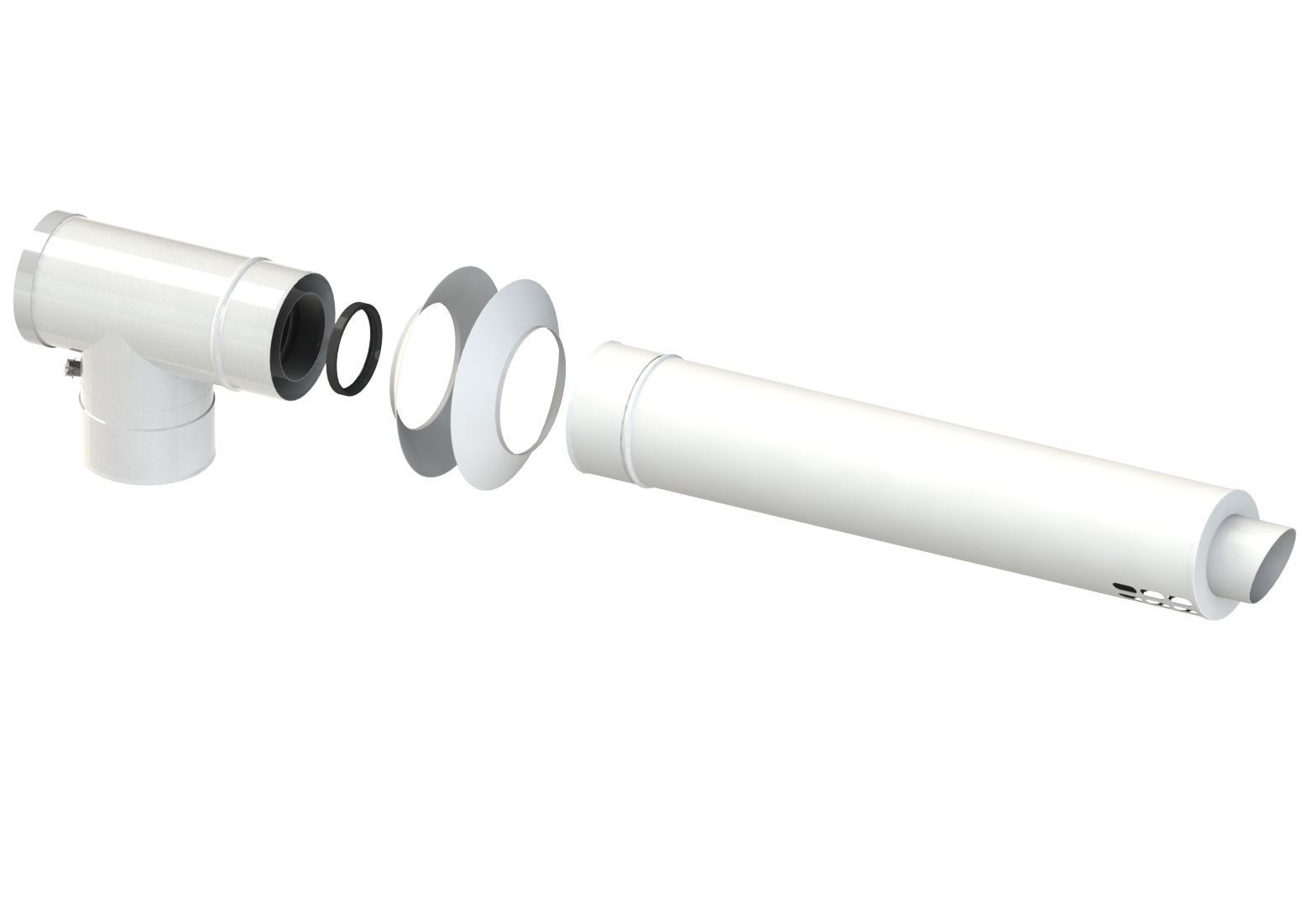 Rozeta do systemu powietrzno-spalinowego CONCEPT, służy do osłony przepustu przez ścianę lub strop instalacji kominowej. Wykonany jest ze stali malowanej na biało i wyposażony w uszczelkę silikonową ułatwiającą montaż na rurze osłonowej systemu.
