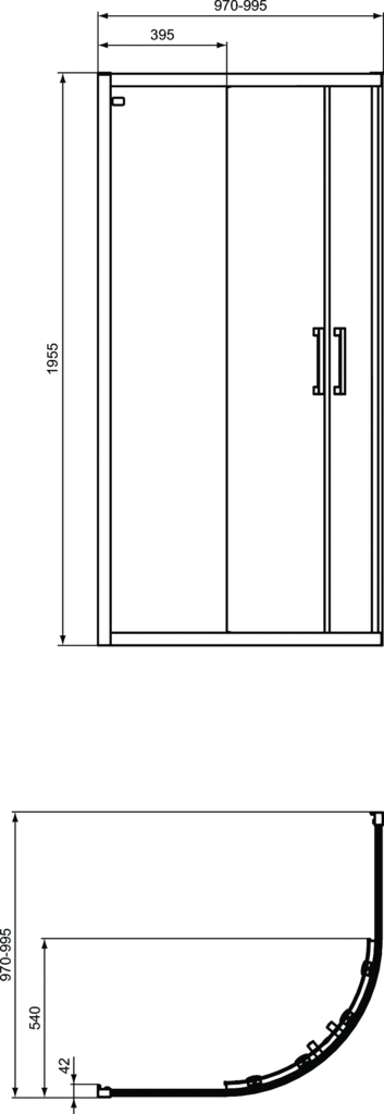 Kabina prysznicowa narożna, półokrągła. Komplet z drzwiami przesuwnymi. Wysokość: 195 cm. Promień: 55 cm. Wykonana z bezpiecznego, transparentnego szkła, 6 mm. Powłoka Ideal Clean o właściwościach zabezpieczających. przed osadzaniem się kamienia. Aluminowa rama, wykończenie: Srebrny Mat lub Biały. Wygodne, chromowane uchwyty, 225 mm. Funkcja Click & Clean (możliwość łatwego odpięcia dolnej części. drzwi). Drzwi przesuwne osadzone na płynnie pracujących rolkach. Regulowane profile ułatwiające dopasowanie kabiny do 25 mm. Kabina do skompletowania ze wszystkimi brodzikami Ideal Standard. o odpowiednich wymiarach lub montowana bezpośrednio. na płytkach.
