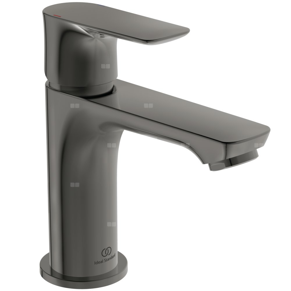 Bateria umywalkowa bez metalowego automatycznego korka. Smukły metalowy korpus 37 mm, głowica 28 mm. Aerator typu Perlator M24x1. Metalowy uchwyt z nadrukowanymi czerwonymi i niebieskimi oznaczeniami. Elastyczne wężyki przyłączeniowe PEX G3/8".