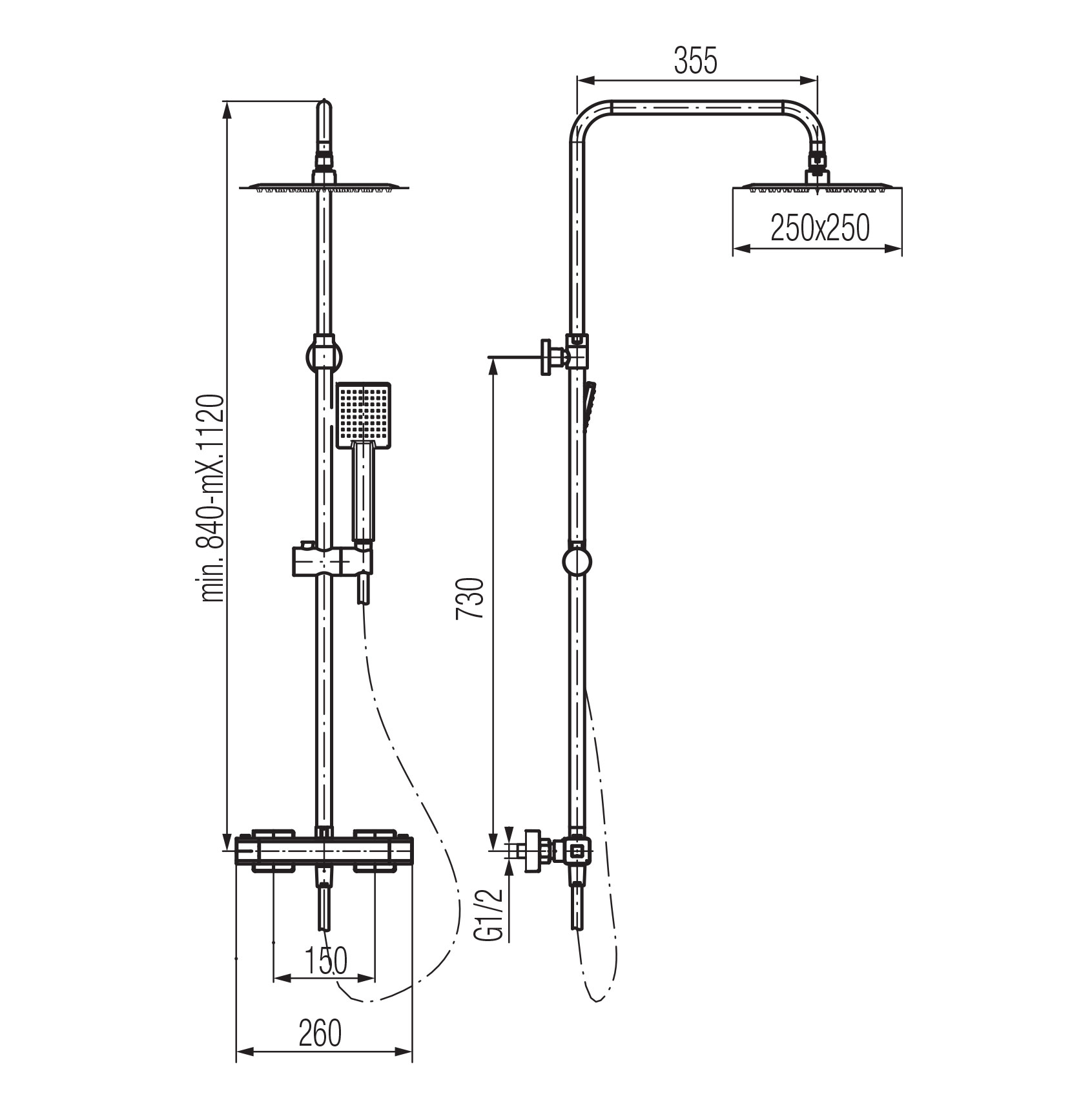 CUBUS Zestaw natryskowy z baterią termostatyczną ESTILL SQUARE PLUS