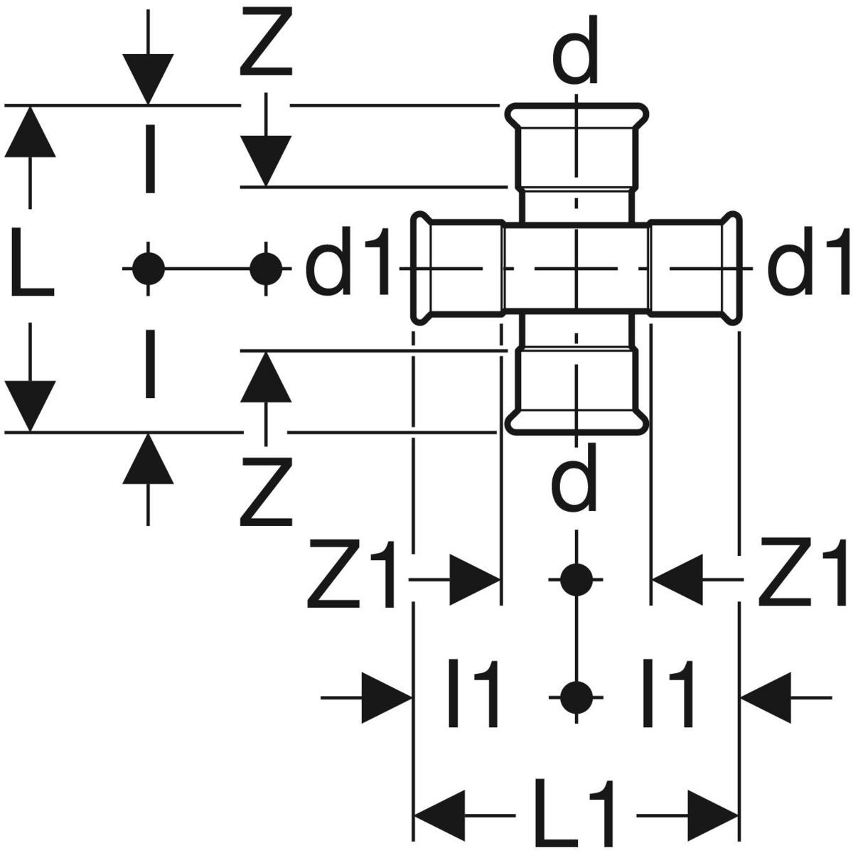 Czwórnik Geberit Mapress C-Stahl 30° redukcyjny