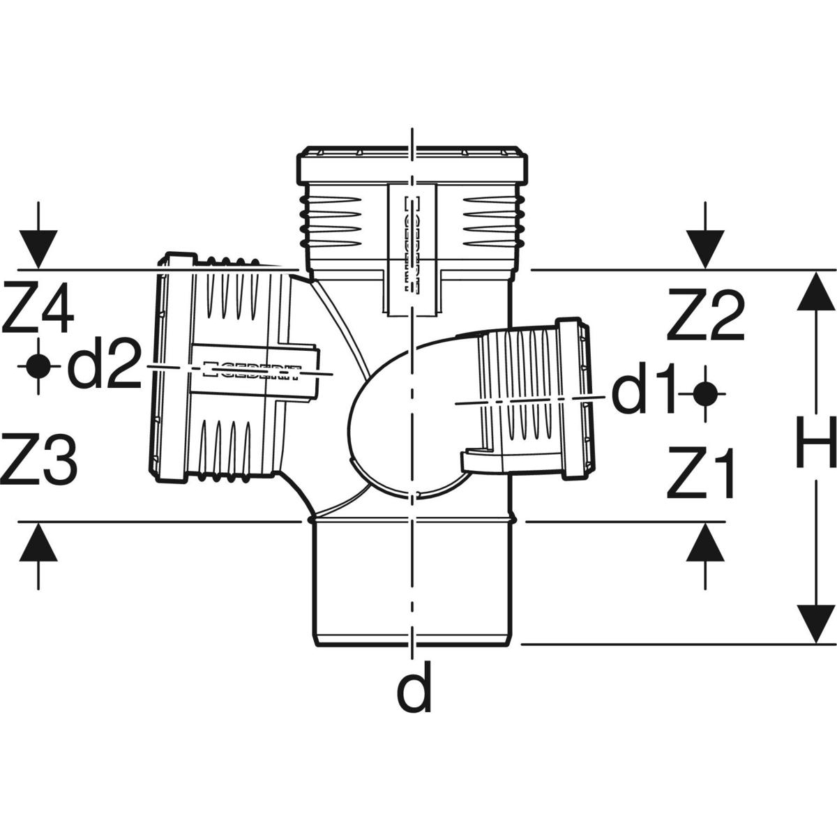 Czwórnik GEBERIT Silent-PP polipropylen, 110 mm x 75 mm x 110 mm x 110 mm DN 100 x DN 70 x DN 100 x DN 100, mw x mw x mw x mw