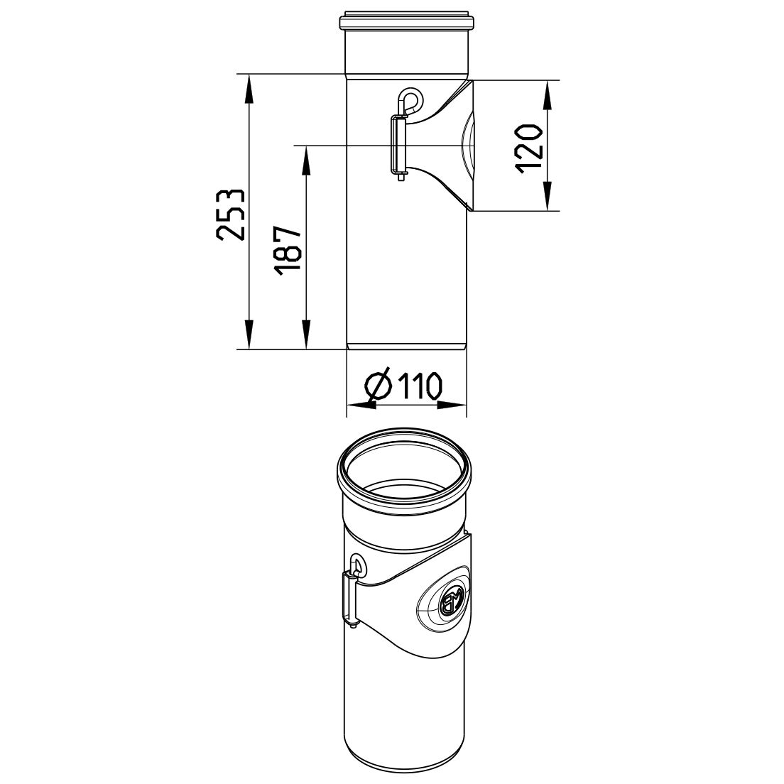 Czyszczak (rewizja pionowa) z pokrywą DN =110 mm, wysoka 195 mm, stal kwasoodporna