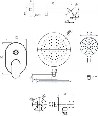 DIONE BLACK Zestaw natryskowy podtynkowy, black mat