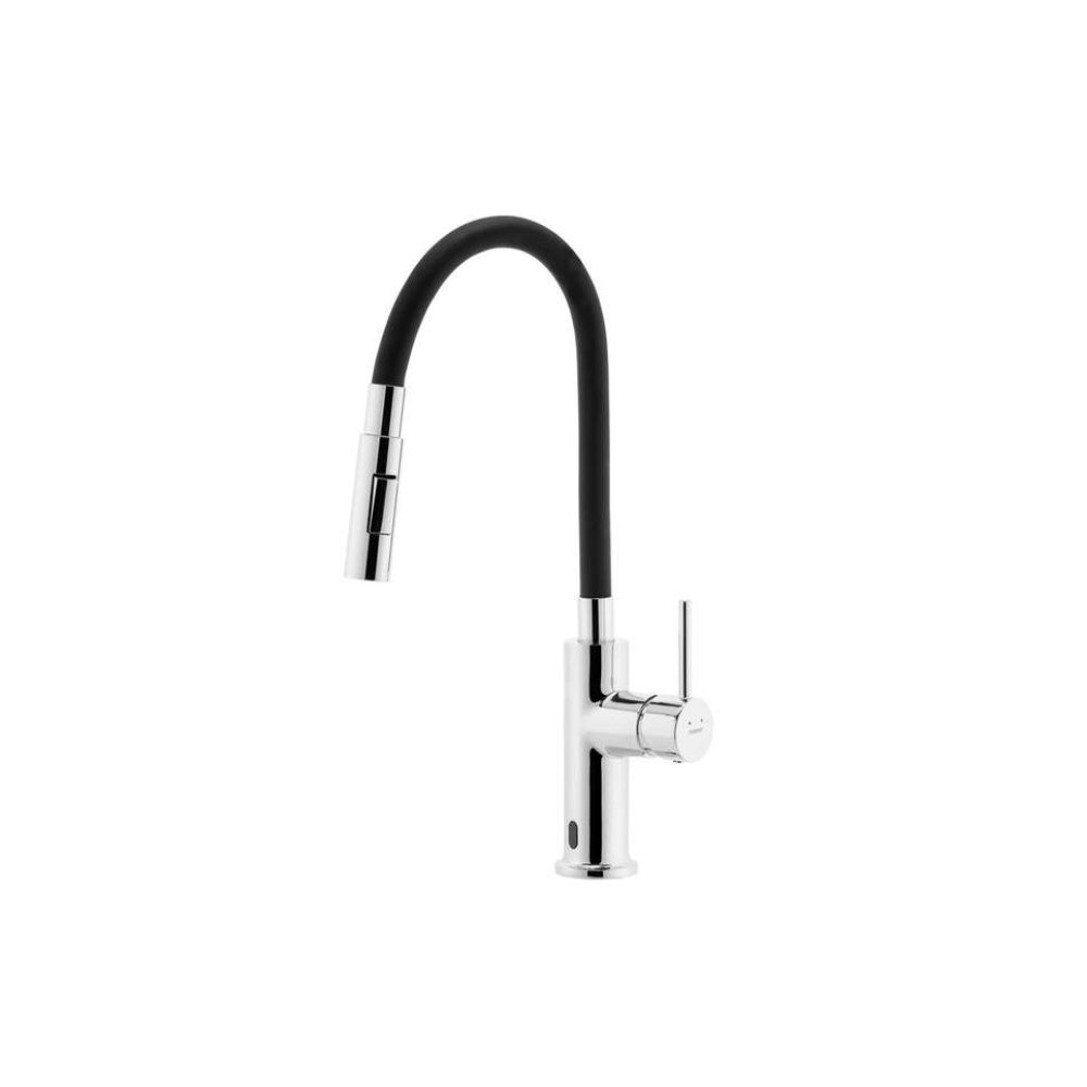 DISTANZA bateria zlewozmywakowa z sensorem, elastyczną czarną wylewką, chrom