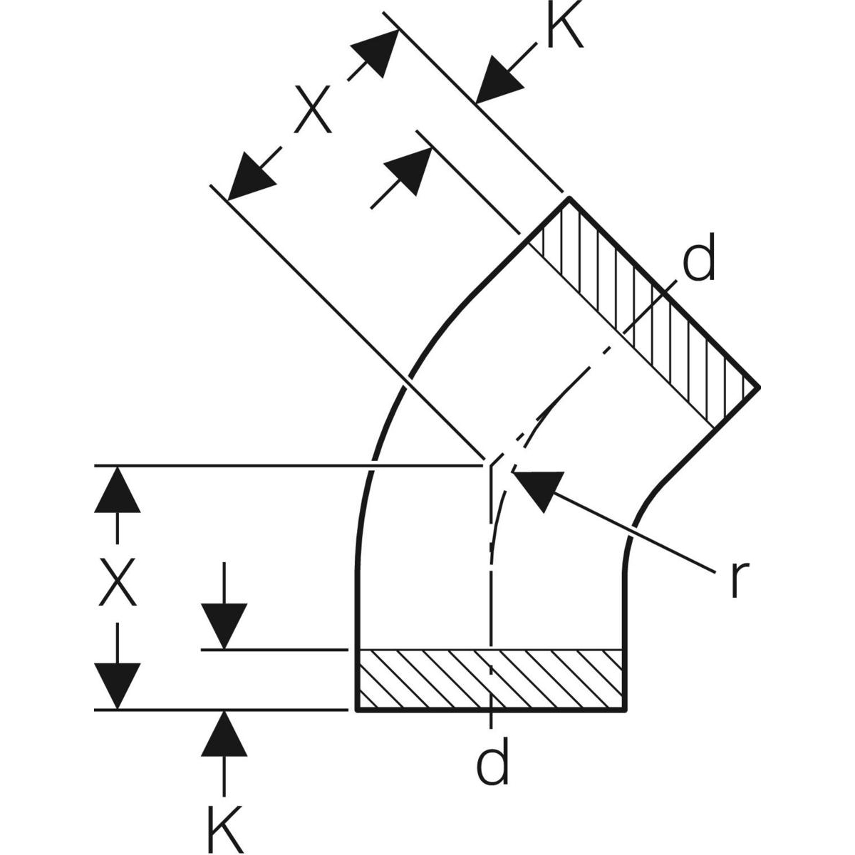 Długi łuk 45' GEBERIT HDPE, PE / polietylen, 200 mm, DN 200 x 200 mm x DN 200 (króciec)