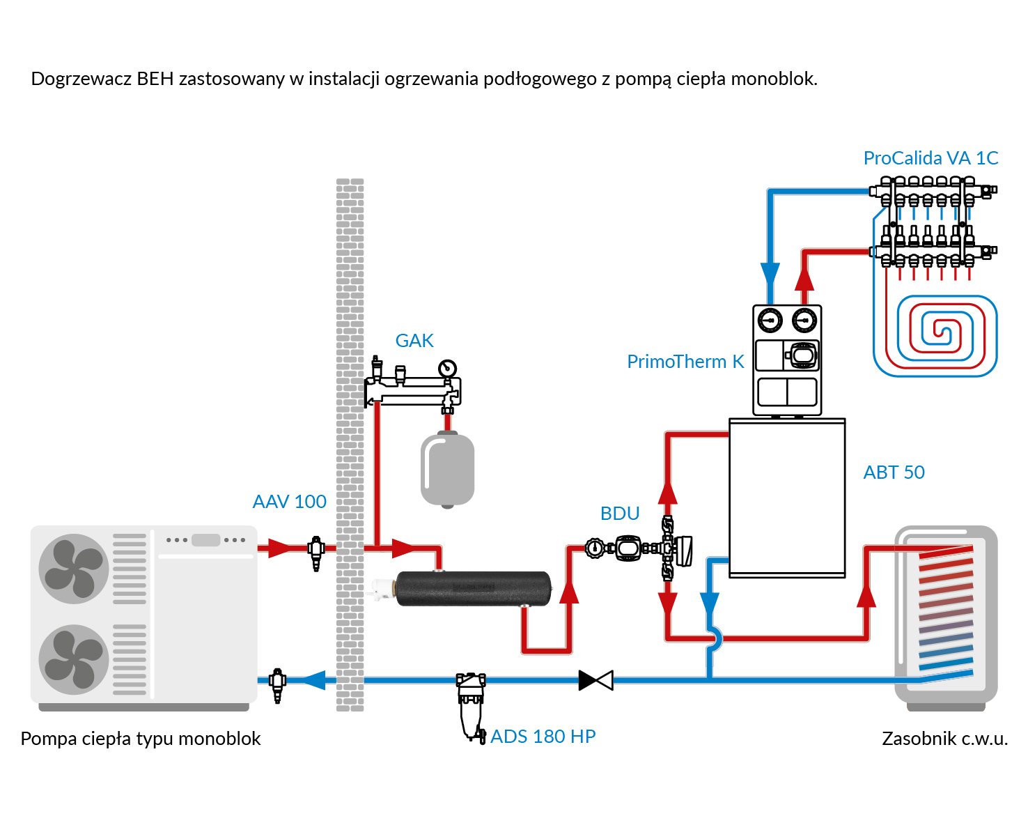 Dogrzewa przepływowo medium do zadanej temperatury.