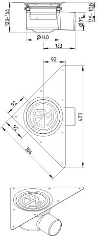 Dolna część MULTI do wpustów TRIO, odpływ 75 mm boczny
