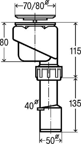 Domoplex-odpływ jednostka funkcyjna nr wzoru 6928.21 DN: 40/50 H: 80 do brodzików z otworem odpływowym fi 52