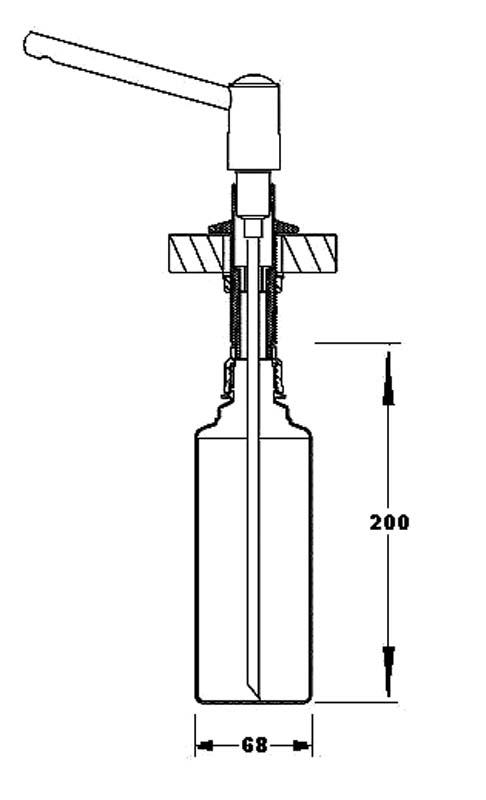 Dozownik do płynów, mocowany w blacie, zlewozmywaku lub umywalce. Element dozujący wykonany z mosiądzu, pokryty warstwą chromu. Kolor – stal szczotkowana. Inne dostępne kolory: SOAP-JAD-CPB – chrom.