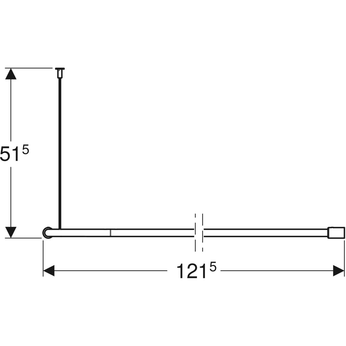 Wymiary: 120 x 120 cm. Stal nierdzewna, powierzchnia gładka, wypolerowana. Średnica: ø 22 mm, montaż narożny, z dodatkowym mocowaniem stropowym 500 x 4 mm. W komplecie: uchwyty do zasłonki prysznicowej z tworzywa sztucznego, kolor biały (24 sztuki), zestaw montażowy do ściany twardej (cegła pełna, beton). Nowa konstrukcja umożliwia dowolne skrócenie wieszaka we własnym zakresie.