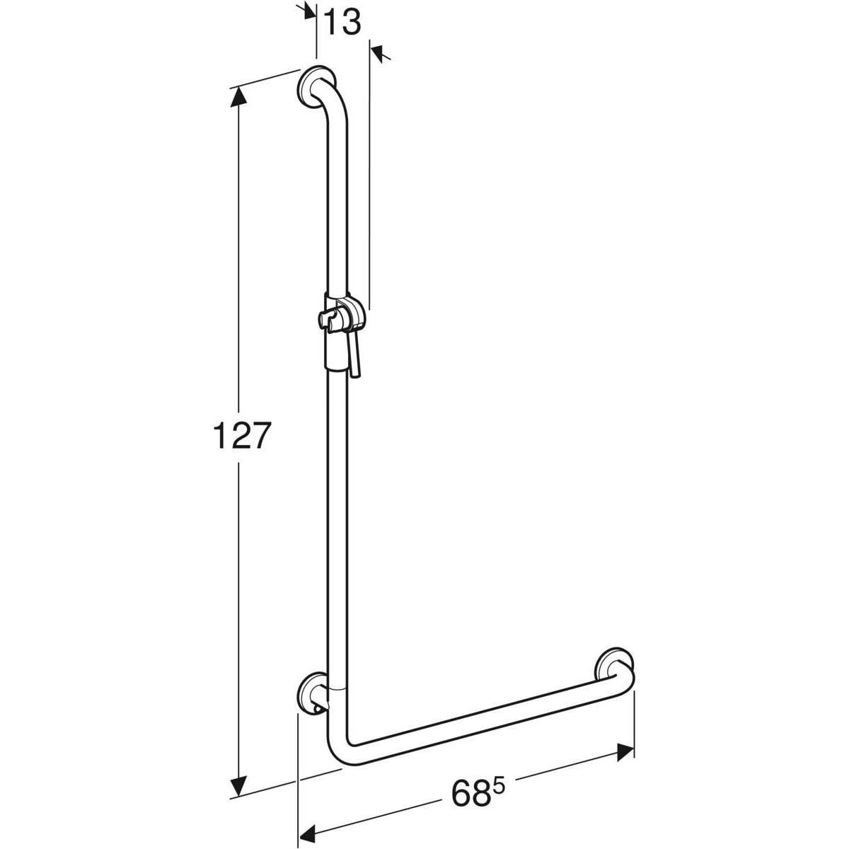 Drążek prysznicowy Koło Lehnen Funktion wygięty, lewy, B68.5cm, H127cm, stal nierdzewna falista