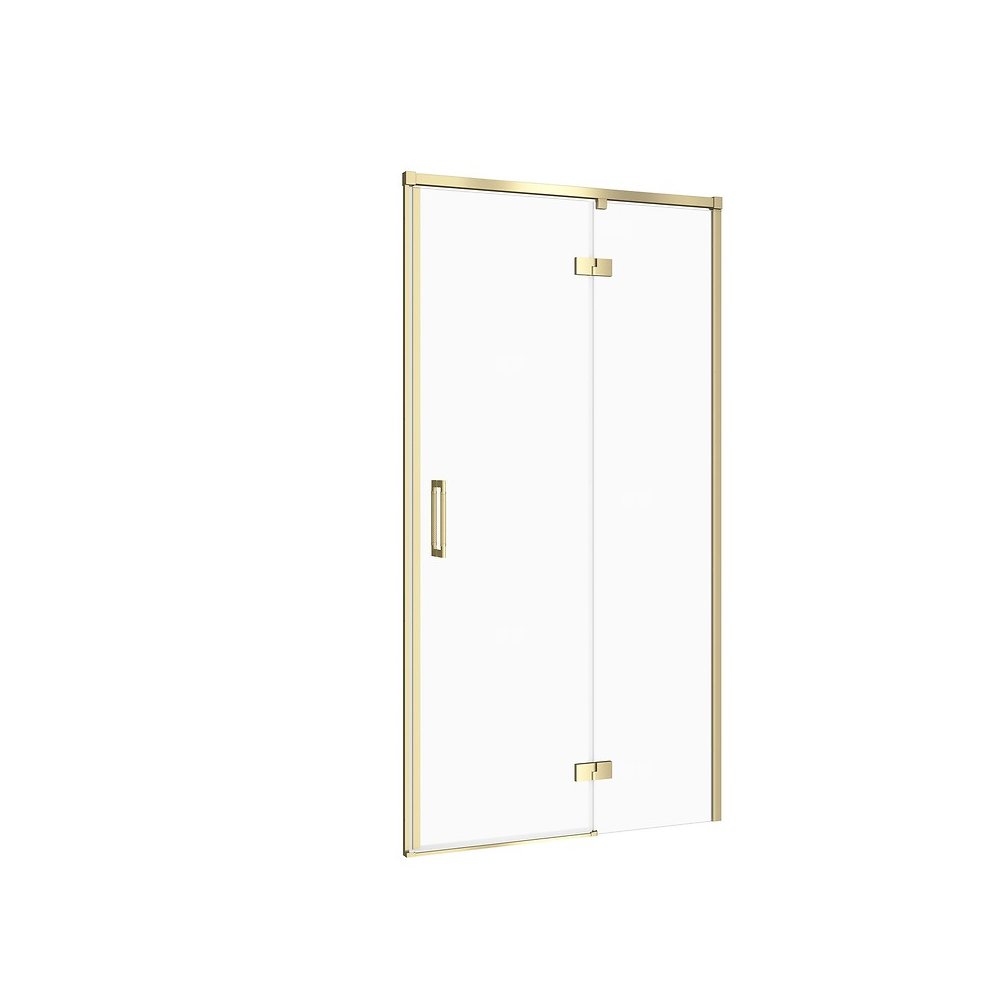 Drzwi kabiny prysznicowej zostały wykonane z bezpiecznego szkła hartowanego o grubości 6 mm, które zapewnia stabilność konstrukcji oraz gwarantuje bezpieczeństwo użytkowania. Szkło wyposażone jest w ochronną powłokę hydrofobową CleanPro skutecznie zapobiegającą osadzaniu się kamienia oraz zanieczyszczeń. Metalowe zawiasy zlicowane z taflą szkła od wewnętrznej strony tworzą jednolitą powierzchnię co ułatwia utrzymanie czystości. Zawiasy posiadają funkcję unoszenia i opuszczania drzwi, dzięki czemu żywotność uszczelek jest wydłużona. Innowacyjny mechanizm zawiasu pozwala także na zatrzymanie drzwi, gdy te otworzą się pod kątem 90° co zapewnia ochronę przed przypadkowym uderzeniem. Dwustronne uchwyty z wysokiej jakości metalu mają radełkowane wykończenie przez co łączą w sobie stylistykę z funkcjonalnością i trwałością. Profil ścienny z regulacją zapewnia większą elastyczność montażu, gdyż jest przystosowany do użycia przy nierównych ścianach. Magnetyczne uszczelki i listwa progowa zapobiegają wydostawaniu się wody poza kabinę gwarantując najwyższy poziom szczelności. Produkt przeznaczony jest do montażu zarówno we wnęce jak i ze ścianką boczną kabiny, z brodzikiem lub bezpośrednio na posadzce. Profile w kolorze złoty matowy. Szkło transparentne. Wysokość 195 cm. Drzwi w wersji prawej. Wysoką jakość produktu potwierdza długoletnia gwarancja.
