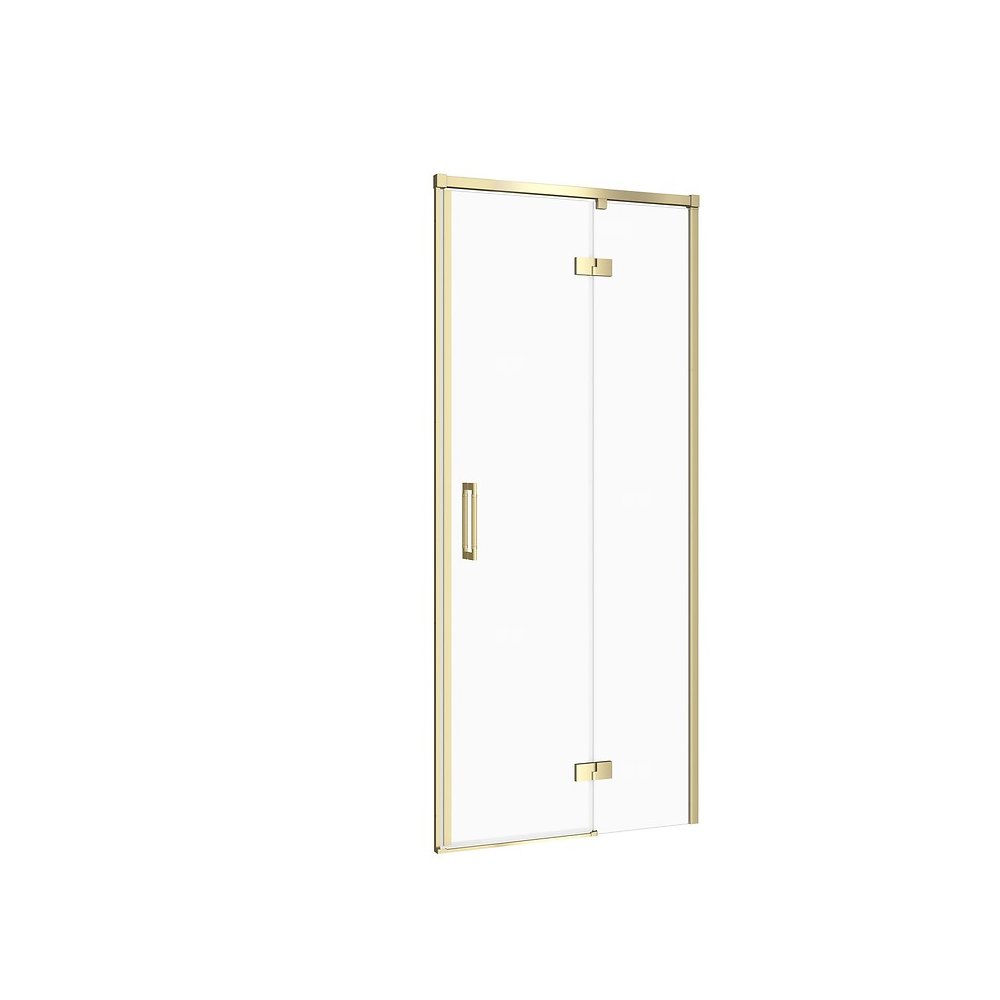 Drzwi kabiny prysznicowej zostały wykonane z bezpiecznego szkła hartowanego o grubości 6 mm, które zapewnia stabilność konstrukcji oraz gwarantuje bezpieczeństwo użytkowania. Szkło wyposażone jest w ochronną powłokę hydrofobową CleanPro skutecznie zapobiegającą osadzaniu się kamienia oraz zanieczyszczeń. Metalowe zawiasy zlicowane z taflą szkła od wewnętrznej strony tworzą jednolitą powierzchnię co ułatwia utrzymanie czystości. Zawiasy posiadają funkcję unoszenia i opuszczania drzwi, dzięki czemu żywotność uszczelek jest wydłużona. Innowacyjny mechanizm zawiasu pozwala także na zatrzymanie drzwi, gdy te otworzą się pod kątem 90° co zapewnia ochronę przed przypadkowym uderzeniem. Dwustronne uchwyty z wysokiej jakości metalu mają radełkowane wykończenie przez co łączą w sobie stylistykę z funkcjonalnością i trwałością. Profil ścienny z regulacją zapewnia większą elastyczność montażu, gdyż jest przystosowany do użycia przy nierównych ścianach. Magnetyczne uszczelki i listwa progowa zapobiegają wydostawaniu się wody poza kabinę gwarantując najwyższy poziom szczelności. Produkt przeznaczony jest do montażu zarówno we wnęce jak i ze ścianką boczną kabiny, z brodzikiem lub bezpośrednio na posadzce. Profile w kolorze złoty matowy. Szkło transparentne. Wysokość 195 cm. Drzwi w wersji prawej. Wysoką jakość produktu potwierdza długoletnia gwarancja.