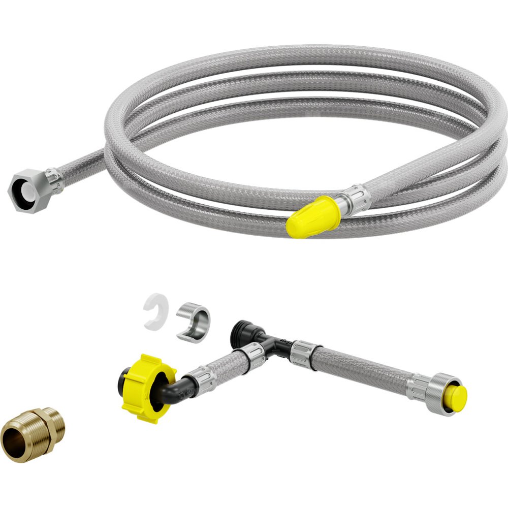 Zestaw przyłączeniowy, przeznaczenie: podwieszane WC myjące, spłuczka podtynkowa 3H, spłuczka podtynkowa 3L, stal nierdzewna, wyposażenie, trójnik przyłączeniowy, wąż zbrojony, nypel redukcyjny ½–⅜, wskazówka: nie nadaje się do stelaży WC ze skrzynką przyłączeniową WC!, nr wzoru 8570.70