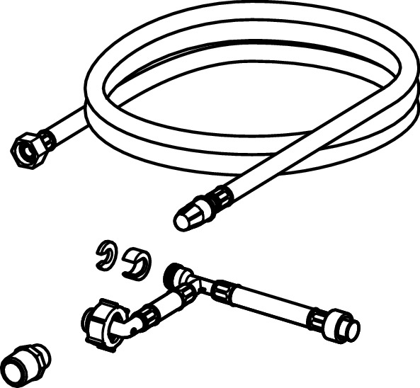 Zestaw przyłączeniowy, przeznaczenie: podwieszane WC myjące, spłuczka podtynkowa 3H, spłuczka podtynkowa 3L, stal nierdzewna, wyposażenie, trójnik przyłączeniowy, wąż zbrojony, nypel redukcyjny ½–⅜, wskazówka: nie nadaje się do stelaży WC ze skrzynką przyłączeniową WC!, nr wzoru 8570.70