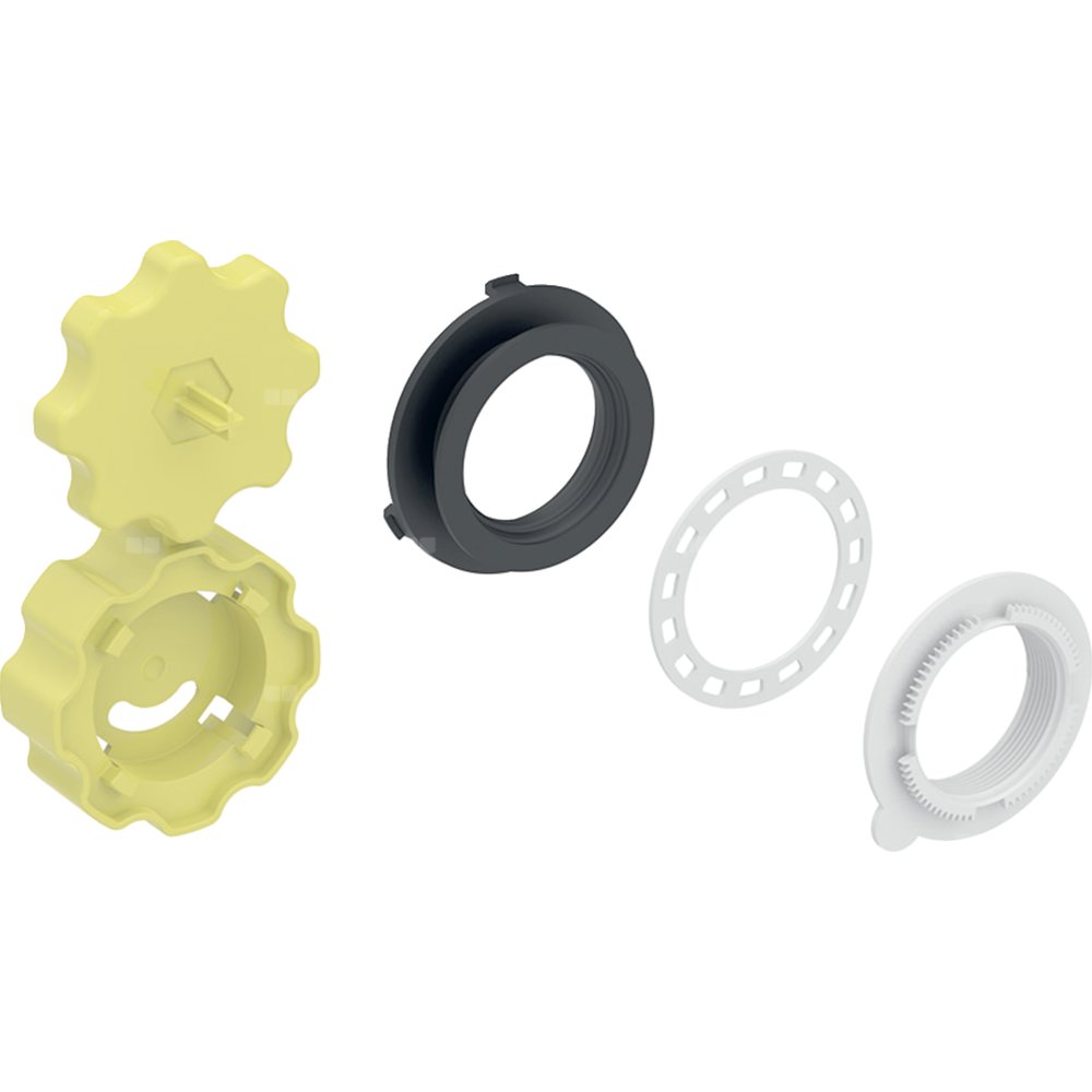 Elementy mocujące Geberit do głowicy przelewowej zestawu odpływowo-przelewowego do baterii podtynkowej