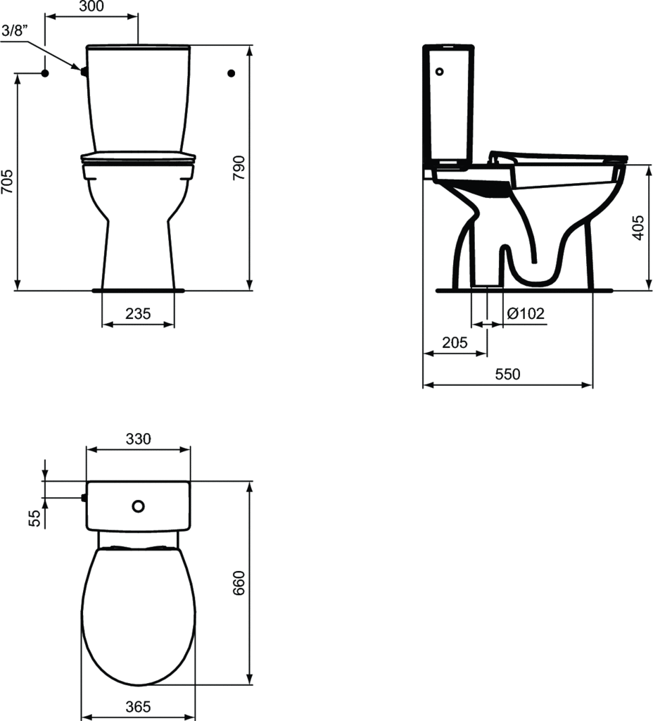 Kompakt WC Eurovit+ ścisle mocowany stojący. Lejowy, z poziomym odpływem pojemność: 4,5/3 l, dwufunkcyjny zbiornik. W komplecie z deską sedesową z duroplastu oraz zestawem montażowym do miski WC.
