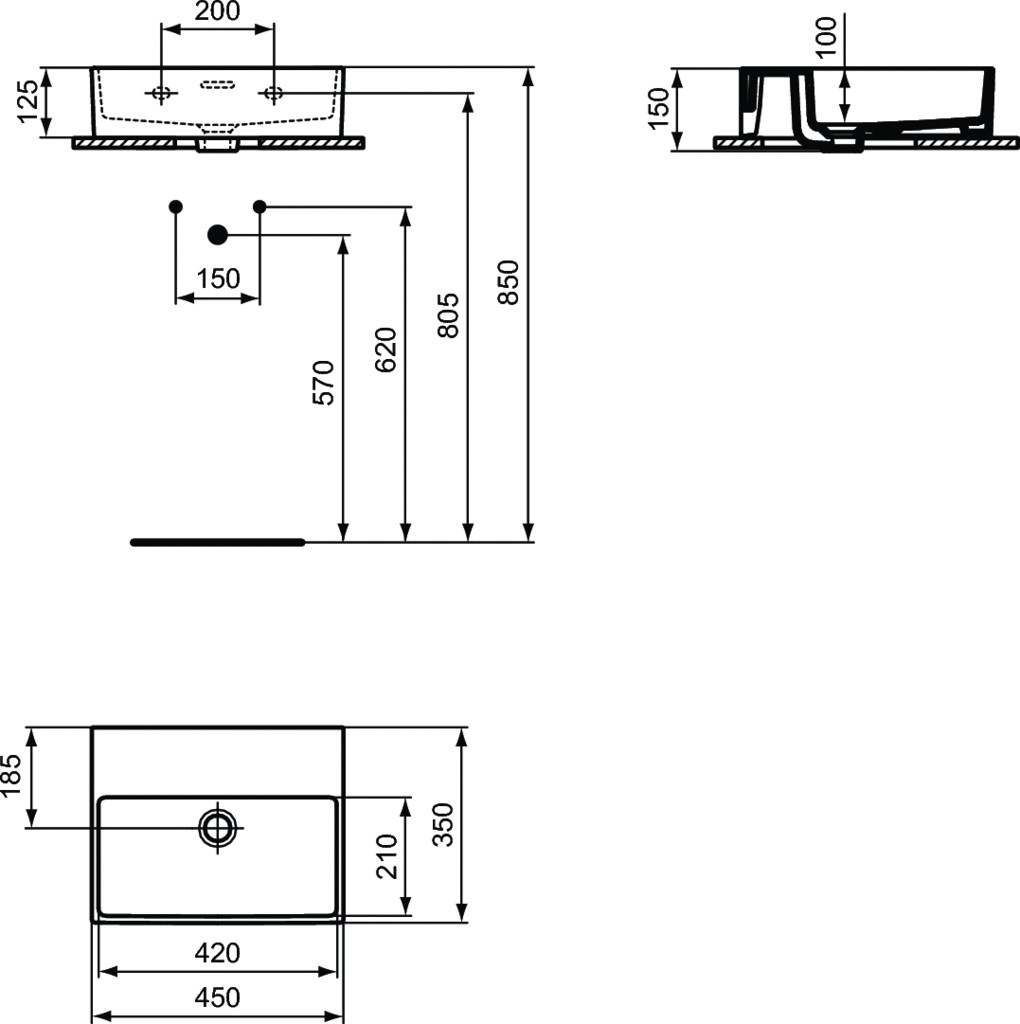 Umywalka do mycia rąk Extra mocowana do ściany bez otworu na baterię, z przelewem. Nieszlifowana od spodu (szkliwiona od spodu): nieodpowiednia do montażu na blacie (nie zapewnia dostatecznie płaskiej powierzchni). Sprawdź możliwe konfiguracje i rekomendowane wyposażenie w katalogu i cenniku Atelier Collections.