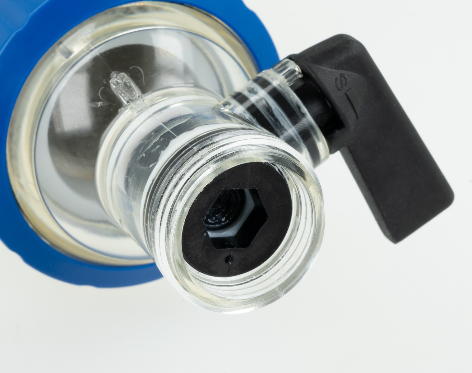 Korek G1/4" można zastąpić manometrem, w celu kontroli ciśnienia na wlocie do filtra.