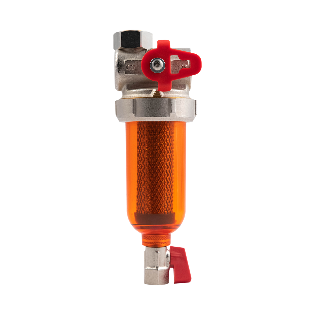 Filtr magnetyczny do kotłów o mocy 32 kW. Filtry te przeznaczone są do montażu w rurach instalacji grzewczych. Wyposażone są w magnes wychwytujący zanieczyszczenia magnetyczne oraz wkład filtrujący ze stali nierdzewnej wychwytujący zanieczyszczenia niemagnetyczne. Filtry wyposażone są również w zintegrowany zawór odcinający, który umożliwia ich łatwe czyszczenie, a także umożliwia tzw. „Pracę awaryjną” z zatkanym wkładem filtracyjnym dzięki funkcji obejścia. › Magnes 11000 NeFeB,