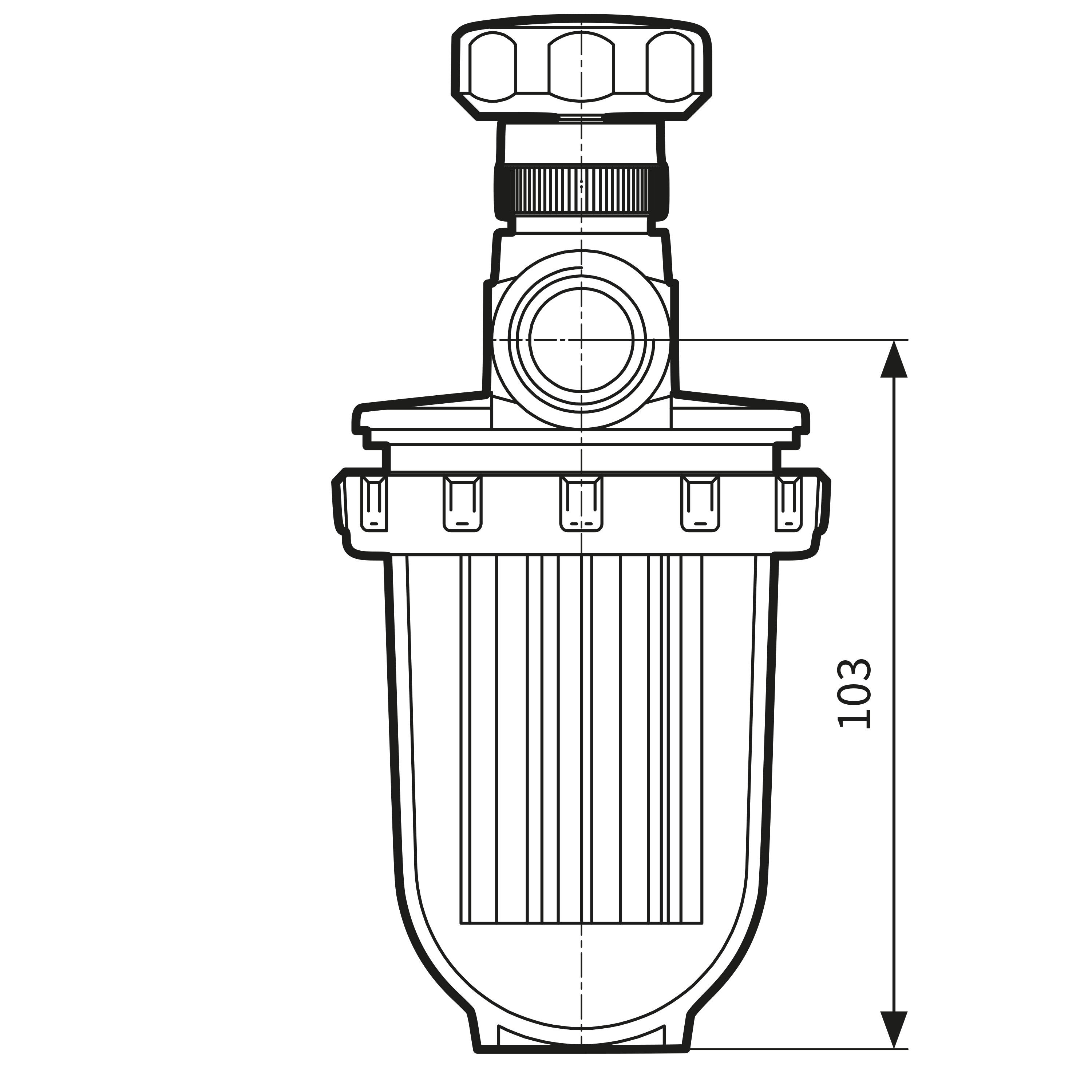 Filtr olejowy AFRISO V 1/2 - 500 Si jednorurowy fi 1/2'' x 1/2'' GW x GW, z wkładem plastikowym, maks. przepływ 390 l/h