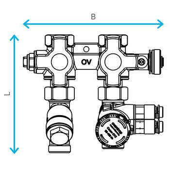 Flypass Set z zaworem Cocon QTZ, zestaw przyłączeniowy DN 20, 250-1800 l/h