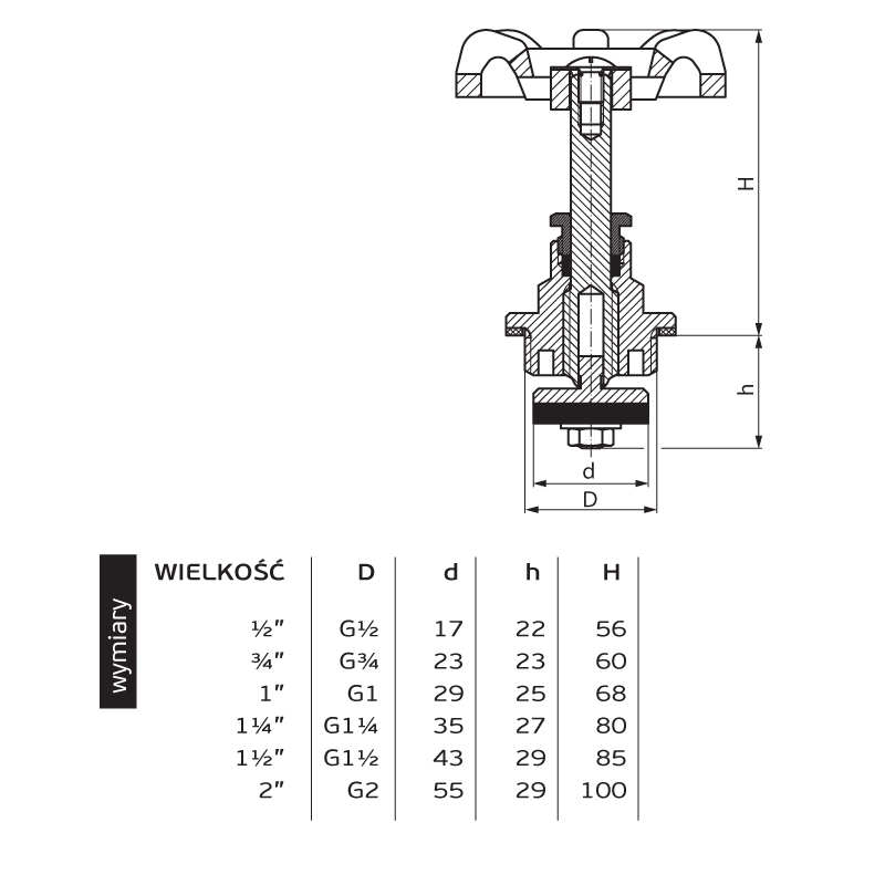 G02 G1 1/4 PN10 Głowica do zaworu zaporowego DN32 żeliwnego PN-M-75002