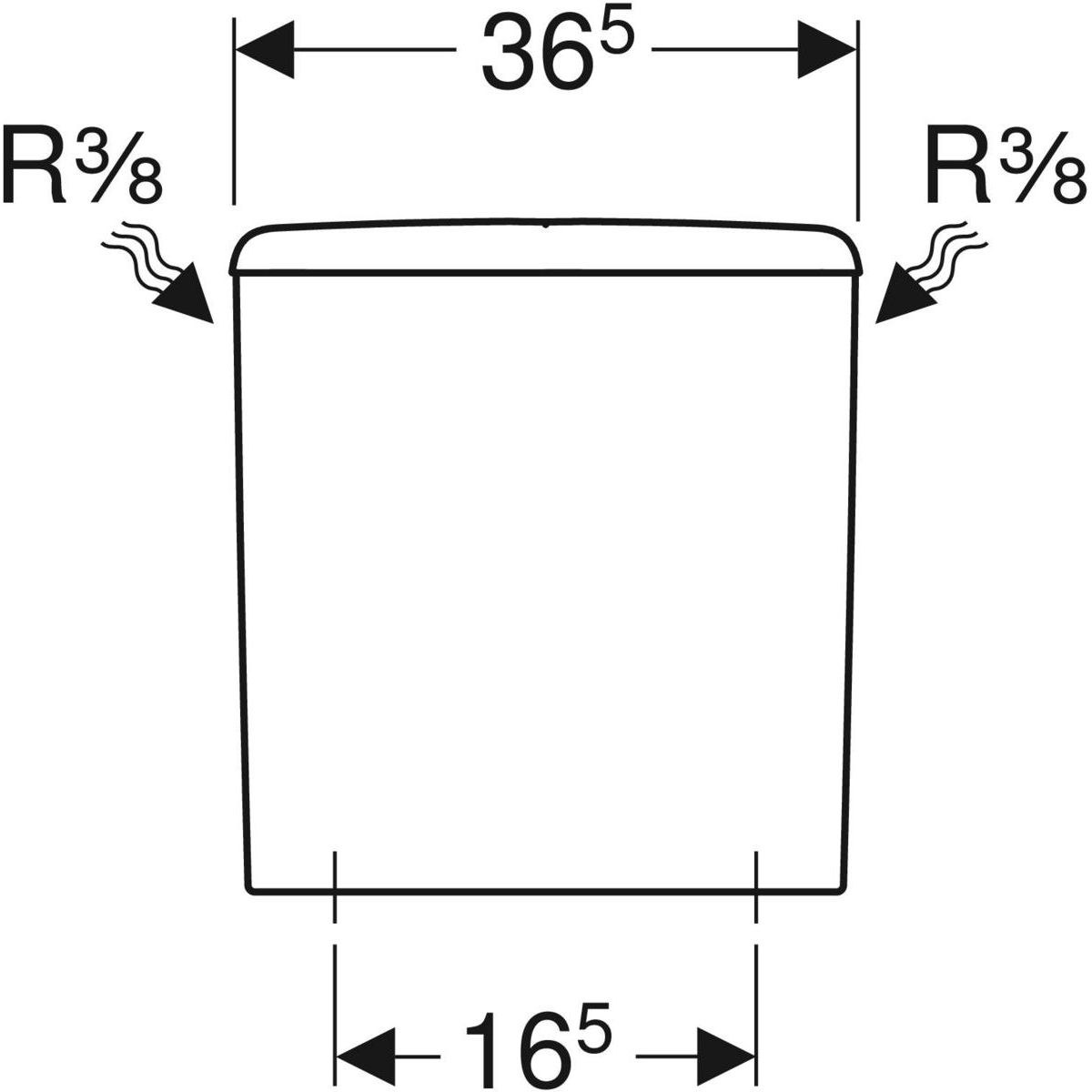 Geberit Selnova Square Spłuczka nasadzana, B36.5cm, H39.5cm, T16.5cm, spłukiwanie dwudzielne, przyłącze wody z boku, obracana, do WC Rimfree