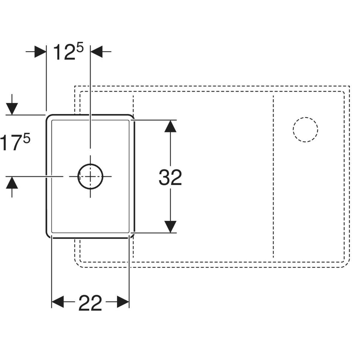 Gipsowy zlew Geberit Publica, dolna część: 25x21x35cm,