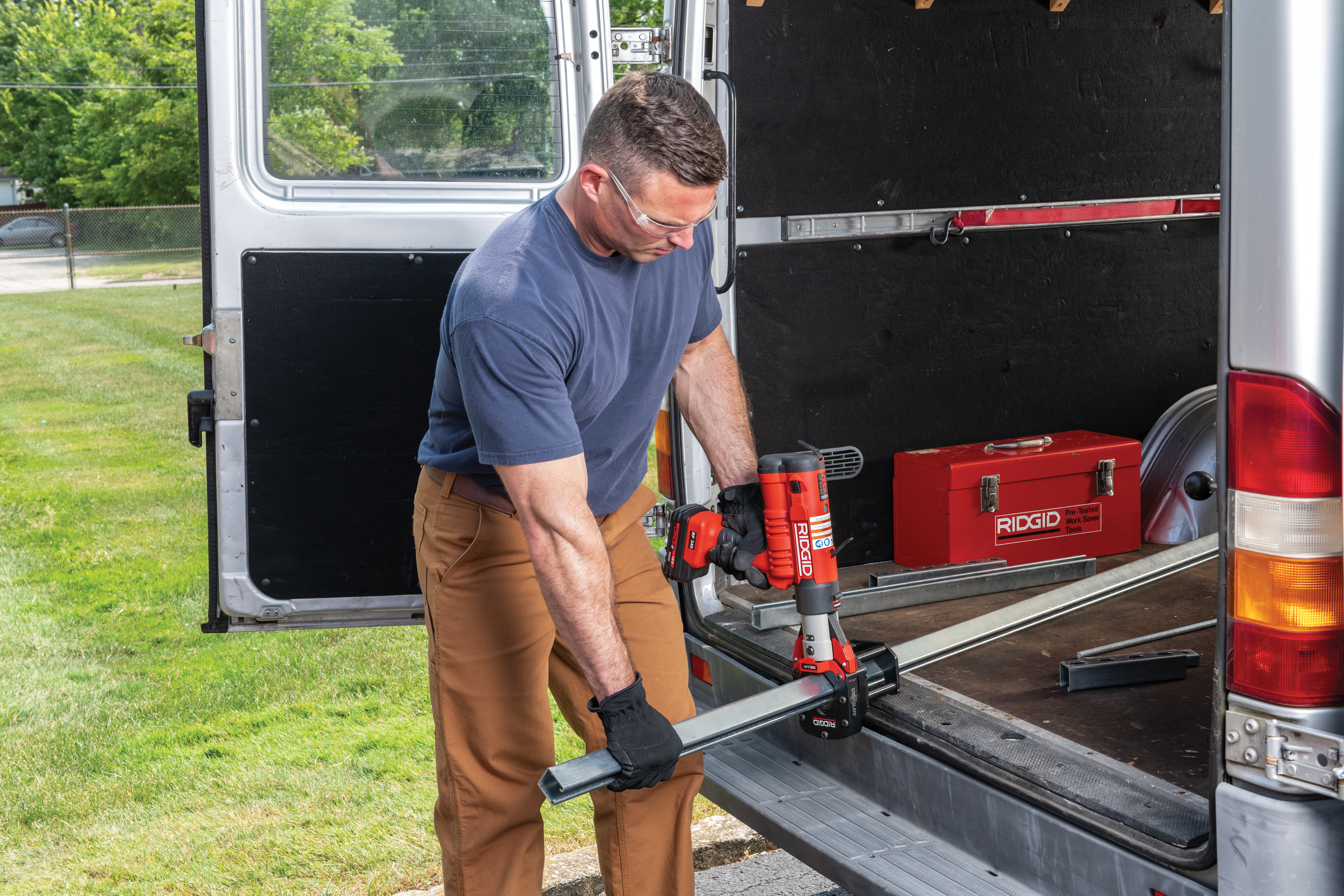 Cięcia bez zadziorów eliminują potrzebę dodatkowego piłowania. Czyste, spójne cięcia w ciągu 5 sekund lub szybciej. Brak iskier przy szlifowaniu lub piłowaniu. Łatwość w poruszaniu się po miejscu pracy i montażu na urządzeniach RIDGID TRISTAND. *Brak zadziorów dzięki dedykowanym nożom 1-5/8" x 1-5/8" (41 mm x 41 mm) lub 1-5/8" x 13/16" (41 mm x 21 mm). Zdolność cięcia - Do 12 ga 1-5/8"x 1-5/8" (41 mm x 41 mm) lub 1-5/8 "x 13/16" (41 mm x 21 mm) (maks. 2,5 mm grubości ściany). Nie stosować do profili ze stali nierdzewnej. Kompatybilność z zaciskarkami - Zaciskarki RIDGID® Standard z serii 32kN (np. RIDGID RP350, RP340, RP330). Nie stosować z zaciskarkami RIDGID 320-E i CT-400.