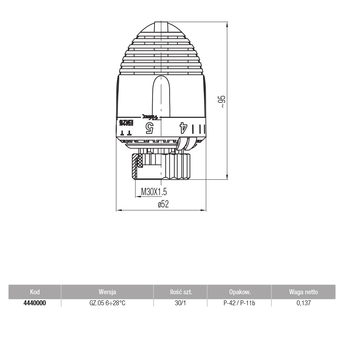 Głowica termostatyczna VECTOR GZ.05 6/28