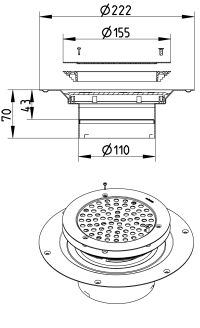 Górna część, okrągła, do podłóg winylowych, 110 mm, z uszczelką do wkładki syfonowej, stal kwasoodporna