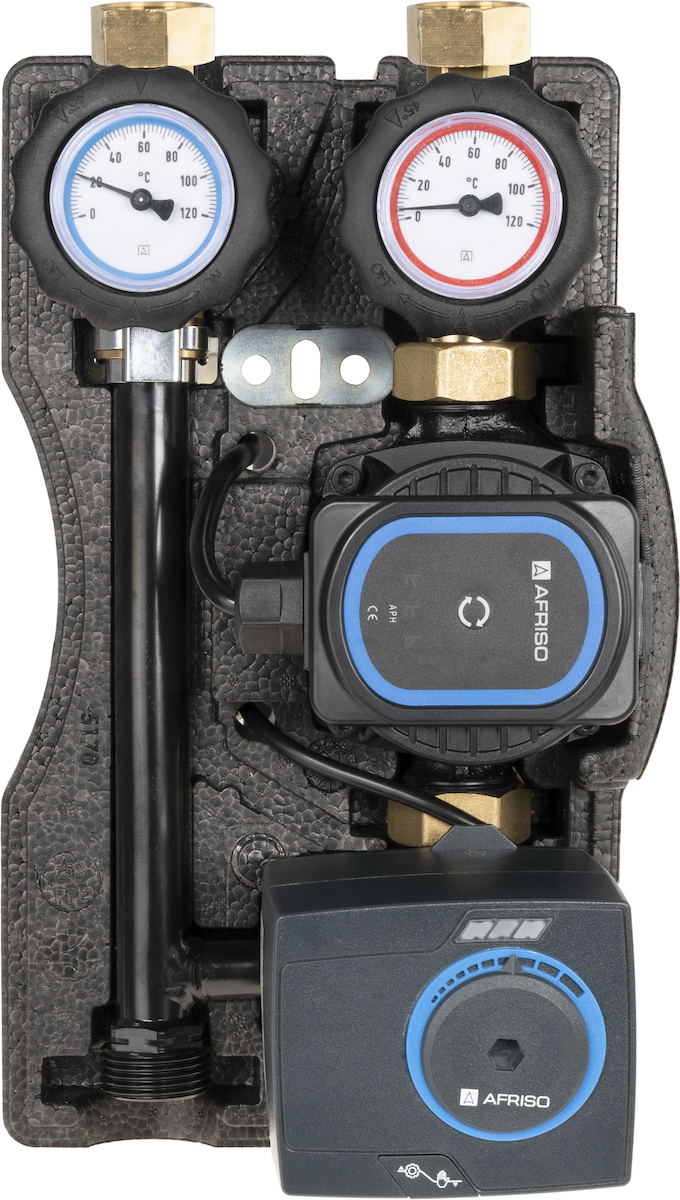Grupa pompowa AFRISO BPG 241 GZ x nakrętka 1'' x 1'', z pompą obiegową AFRISO APH 160 15-7/130 mm, z siłownikiem arm 141