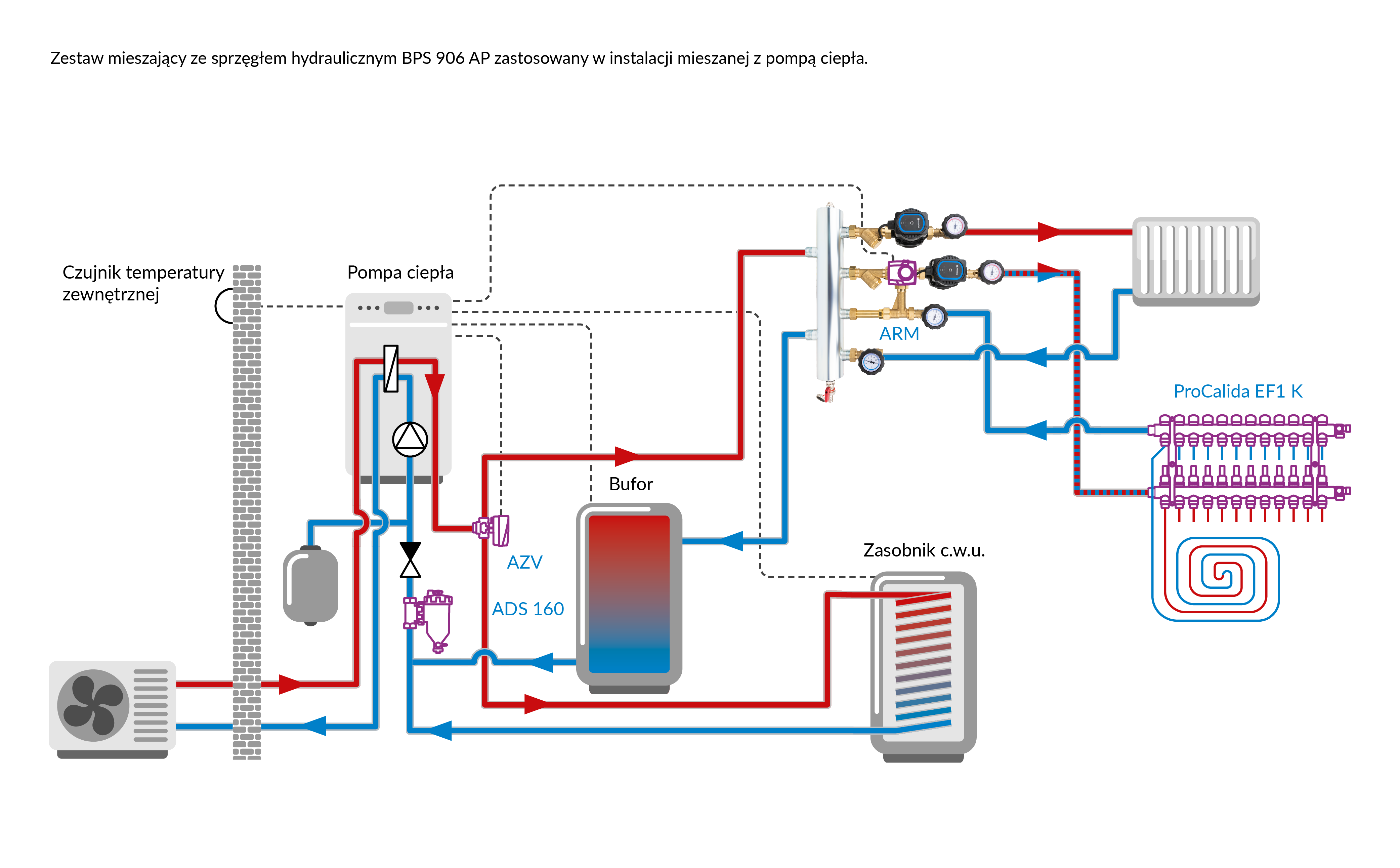 Stosowany w instalacjach grzewczych i chłodzących.Montowany na ścianie między źródłem a instalacją.