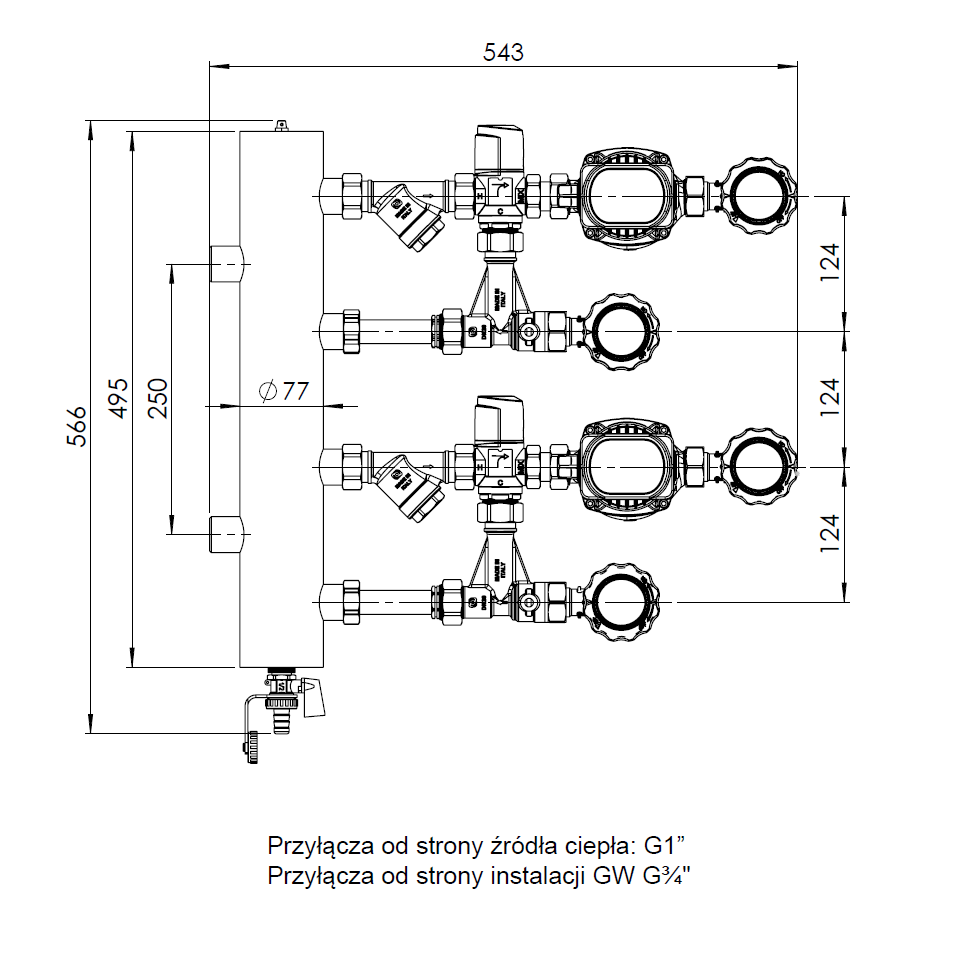 Pozwala na przyłączenie dwóch obiegów grzewczych/chłodzących.