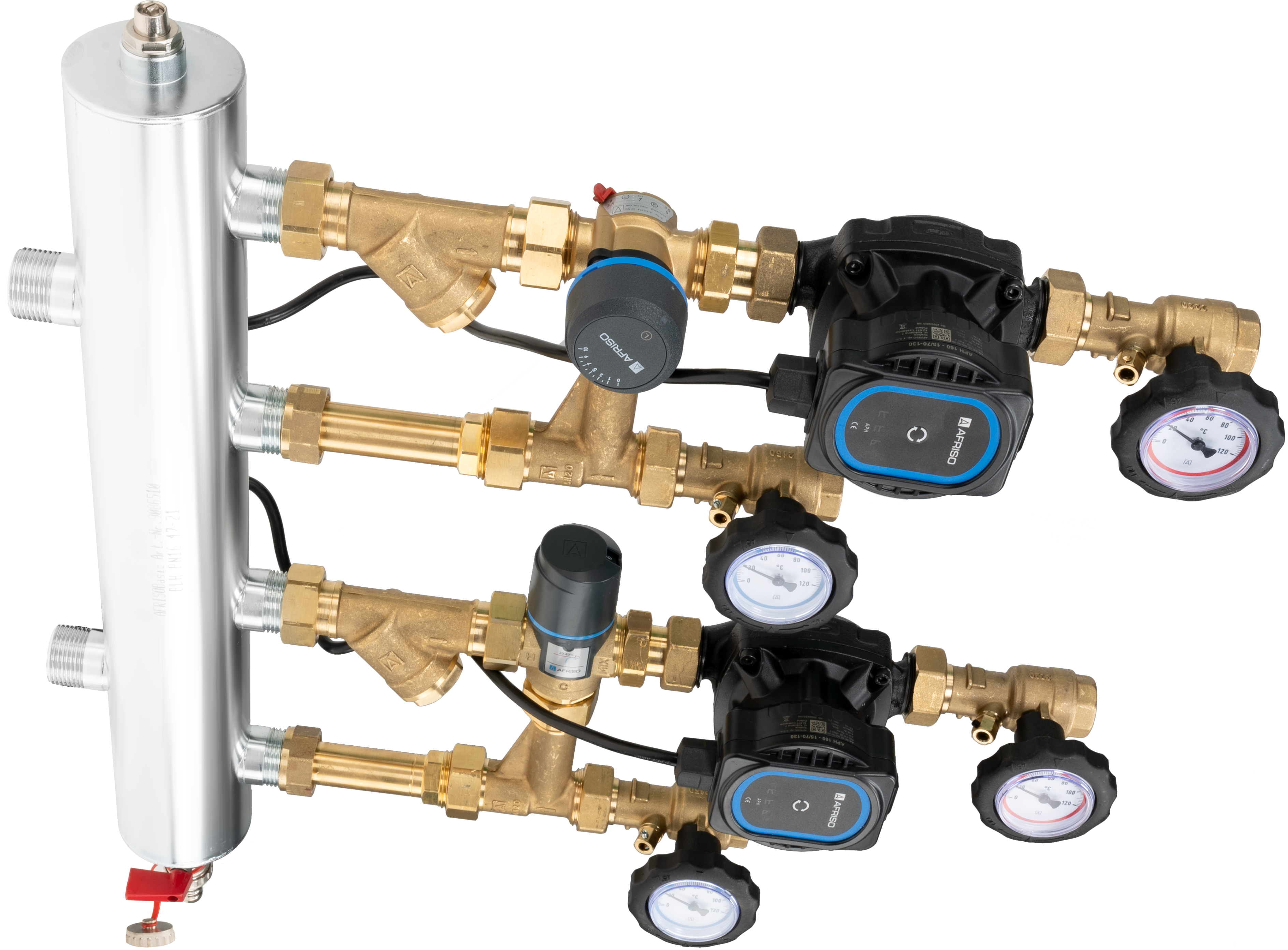 Grupa pompowa AFRISO BPS 961 AP GZ x GW 1'' x 3/4'', z zaworem mieszającym, z zaworem termostatycznym, z pompą obiegową AFRISO APH 160 15-7/130 mm